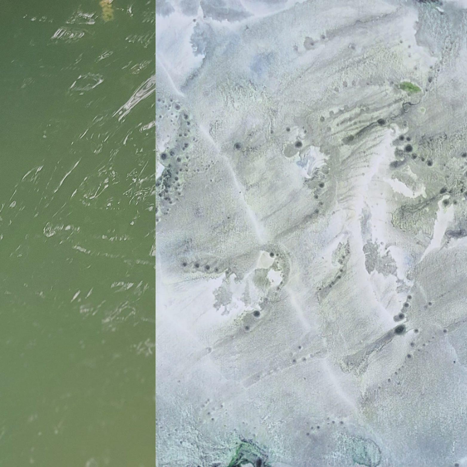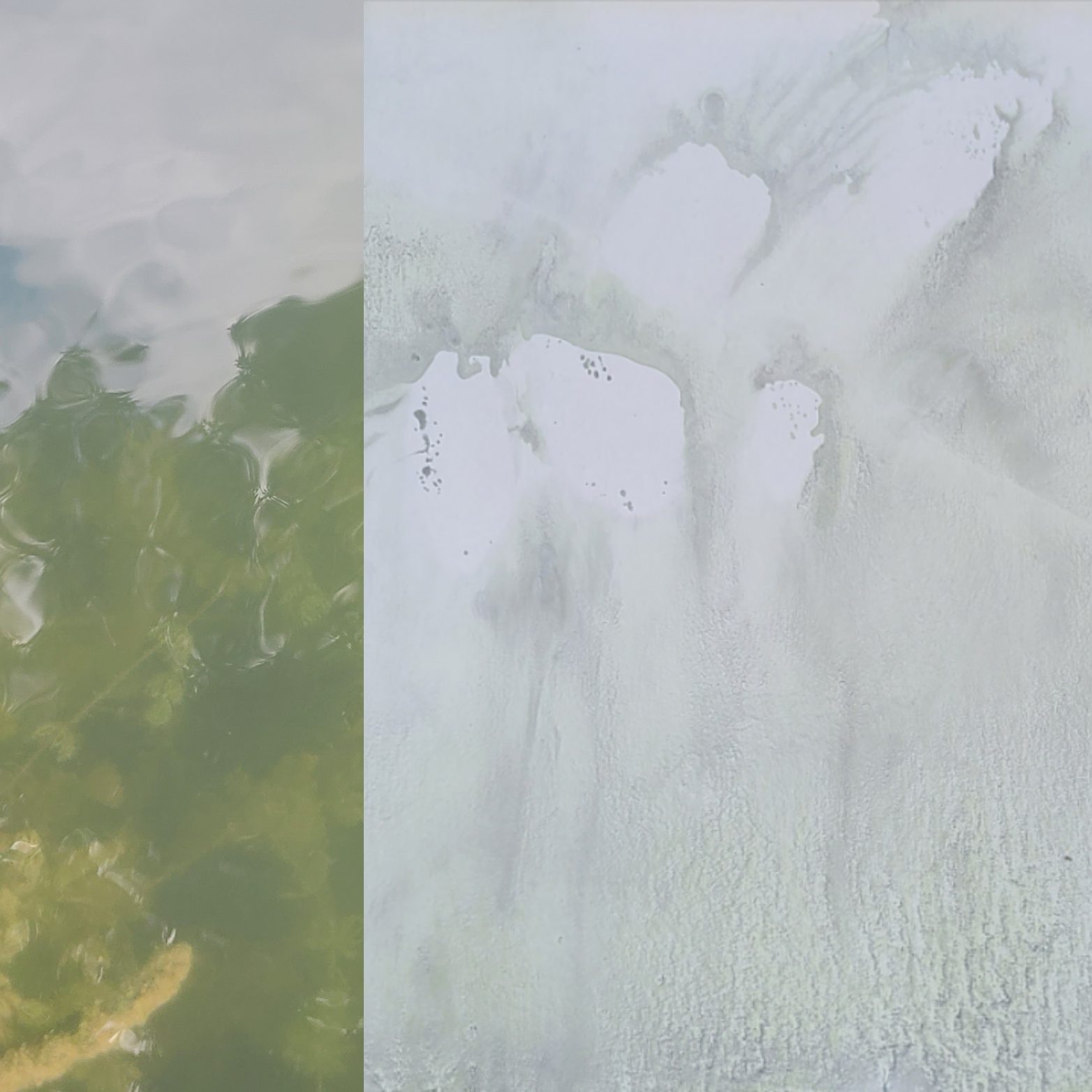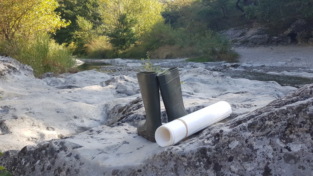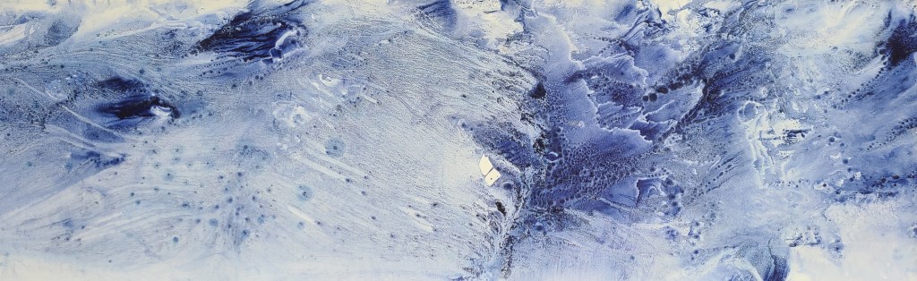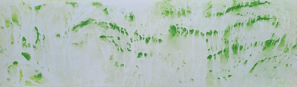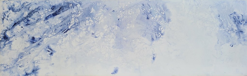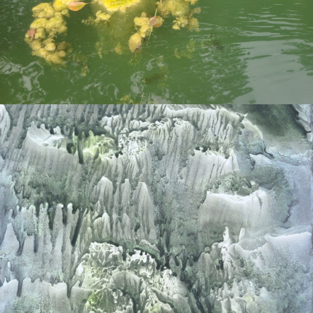 Deux mondes, mémoire du Vidourle, photo et encre sur carton, dimensions variables 42x50cm – 2025La rivière, encre lino sur carton, 45x145cm – 2024Résidences au bord du Roubion (Drôme) – 2022 à 2025Encore la rivière, encre de Chine sur intissé et limon, 45x145cm – 2024Reflets d’étang, 21 eaux-fortes 25x35cm – Étang de Thau – 2024