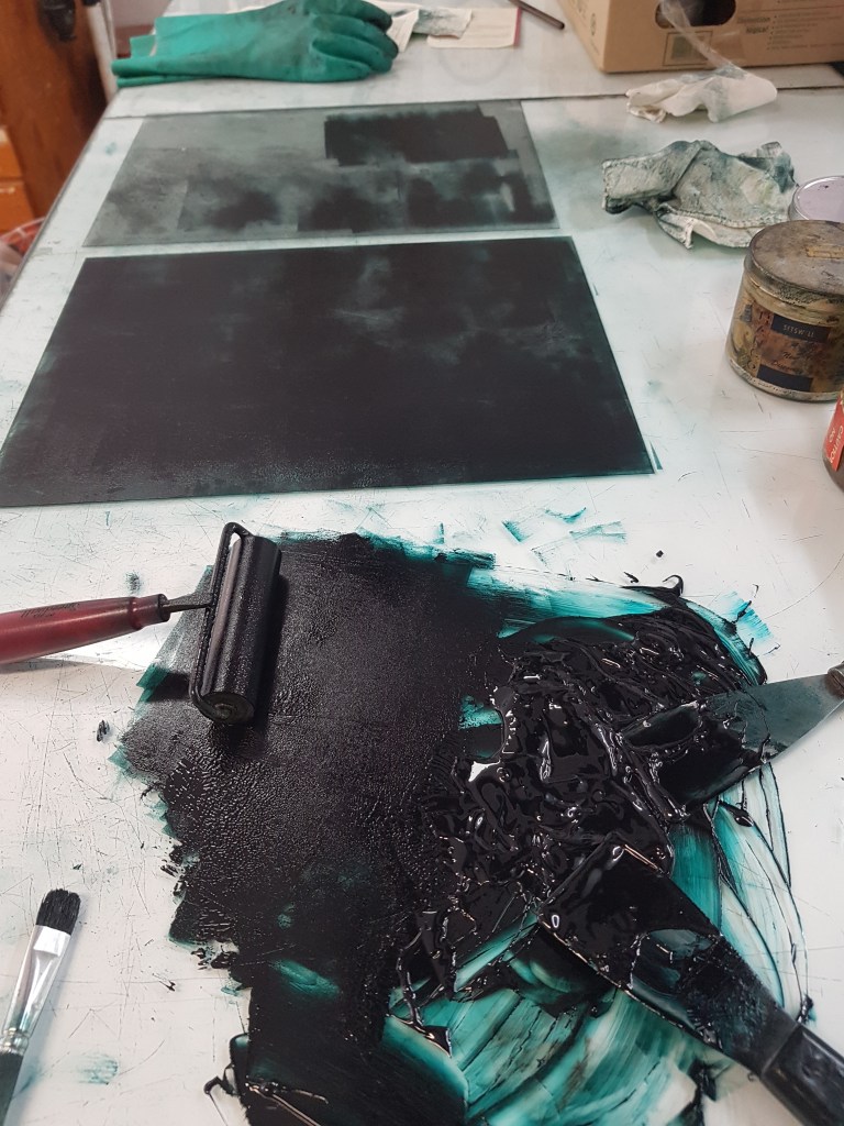 Le Saint-Laurent, carborundum, diptyque, 43x60cm – 2022résidence à LLança, Espagne – janvier 2018 – mars 2019