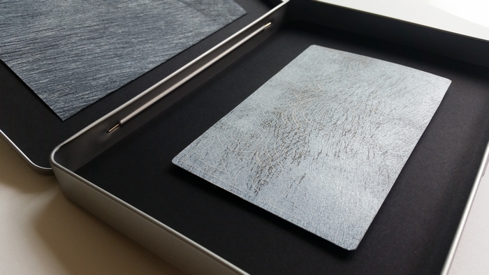 CALES DE BRIDAGE, Leporello comportant 18 pièces en aluminium imprimées à l’encre taille-douce sur papier Hahnemühle 300g, couverture en zinc, 10 exemplaires, format plié 7×14,5cm, 2019