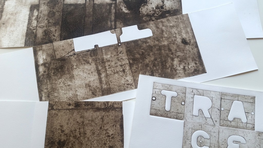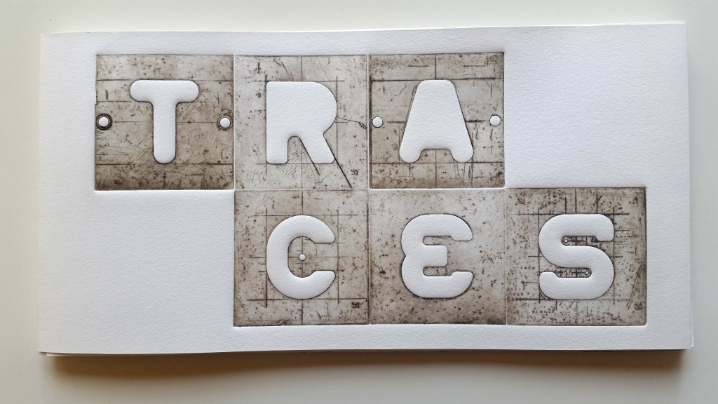 TRACES, d’après des plaques et lettres de typographie industrielles, 7 planches doubles, 20x40cm, étui plexiglas, 10 exemplaires, 2017