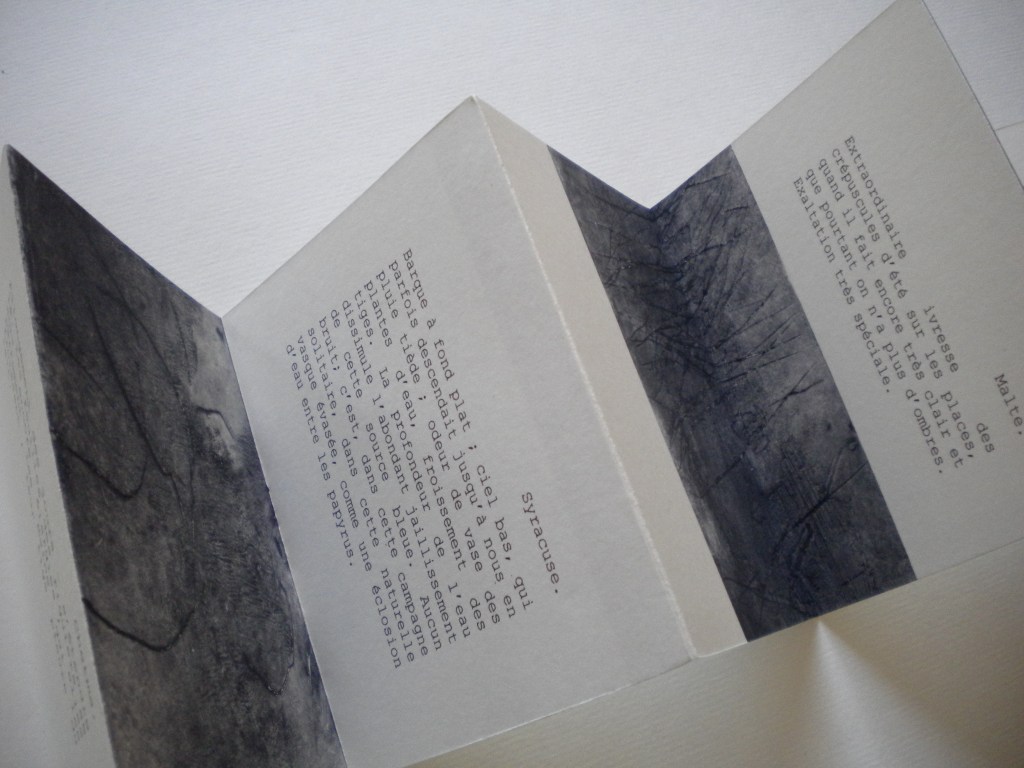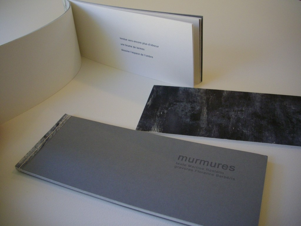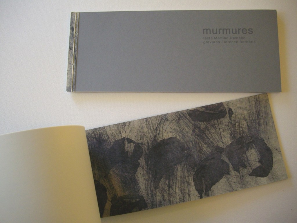 MURMURES, texte Martine Rastello, 25x10cm, 3 gravures, 10 exemplaires et 2 exemplaires avec