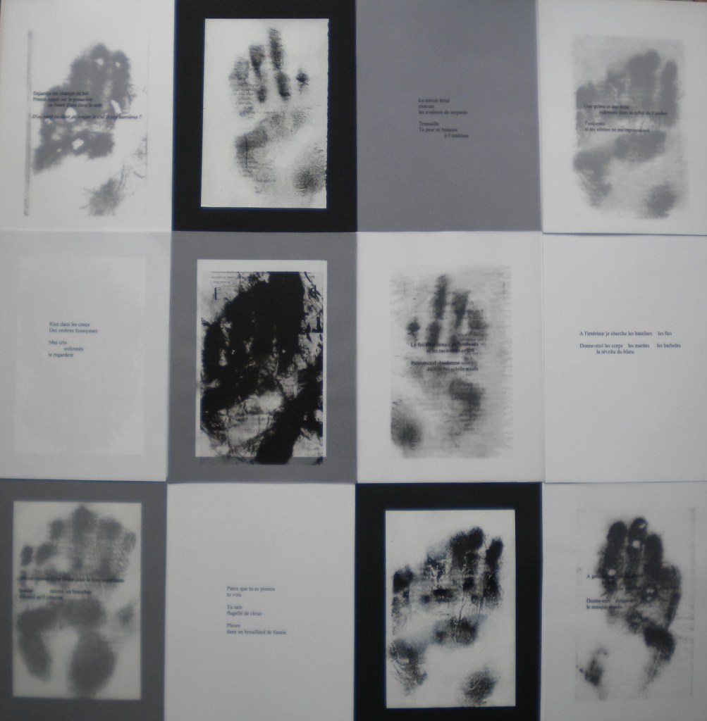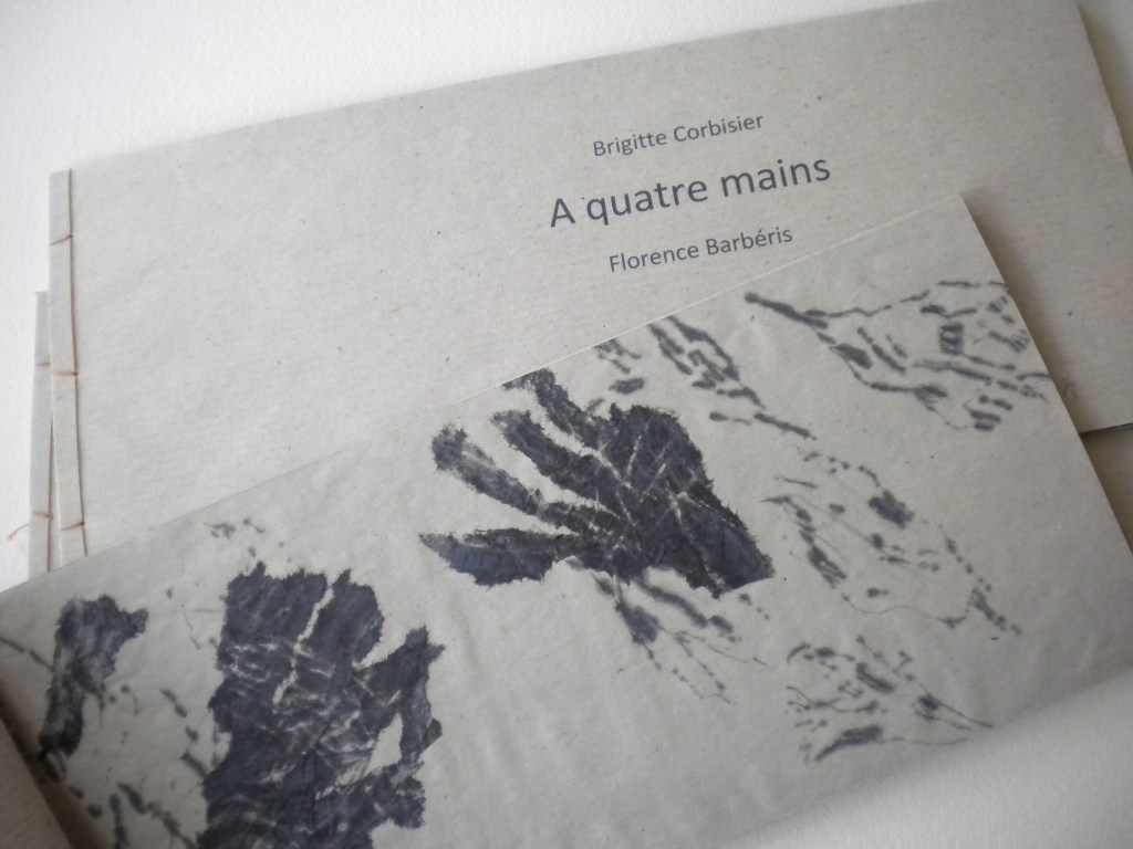 A QUATRE MAINS, réalisé avec Brigitte Corbisier, reproductions gravures et monotypes avec un original, 16 exemplaires, 30x13cm, mars 2013