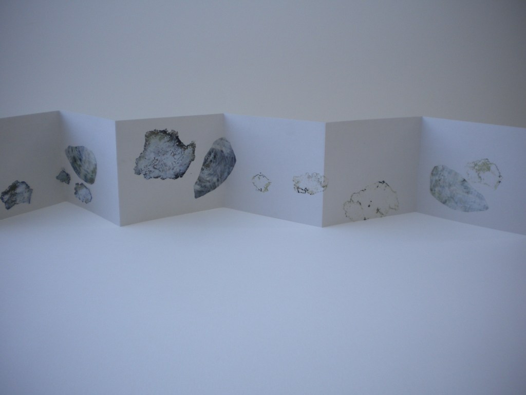 TOURNER AUTOUR D’UNE HUITRE, dessins et gravures, étui en calque cousu, 14 exemplaires uniques, 2012