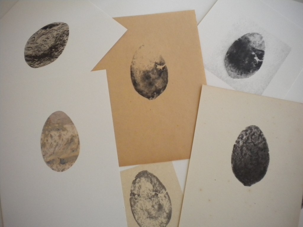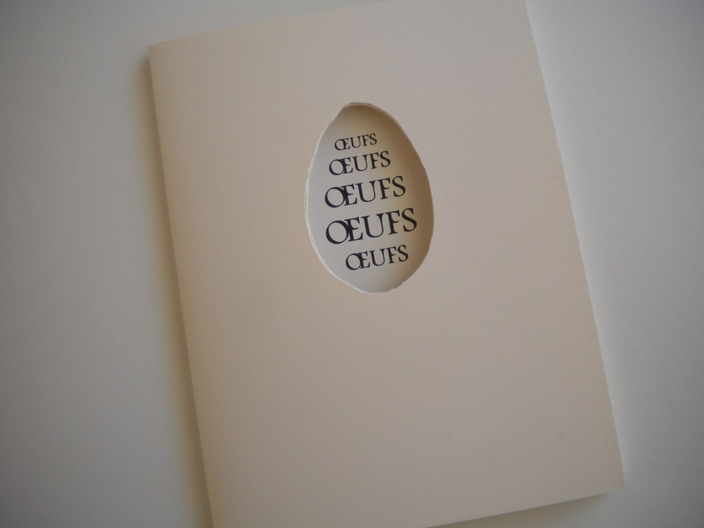 OEUFS, recueil comprenant huit gravures, dont une originale et sept reproductions, avec collages et différents papiers issus des tiroirs familiaux, 15x20cm, 10 exemplaires et un hors commerce, 2011