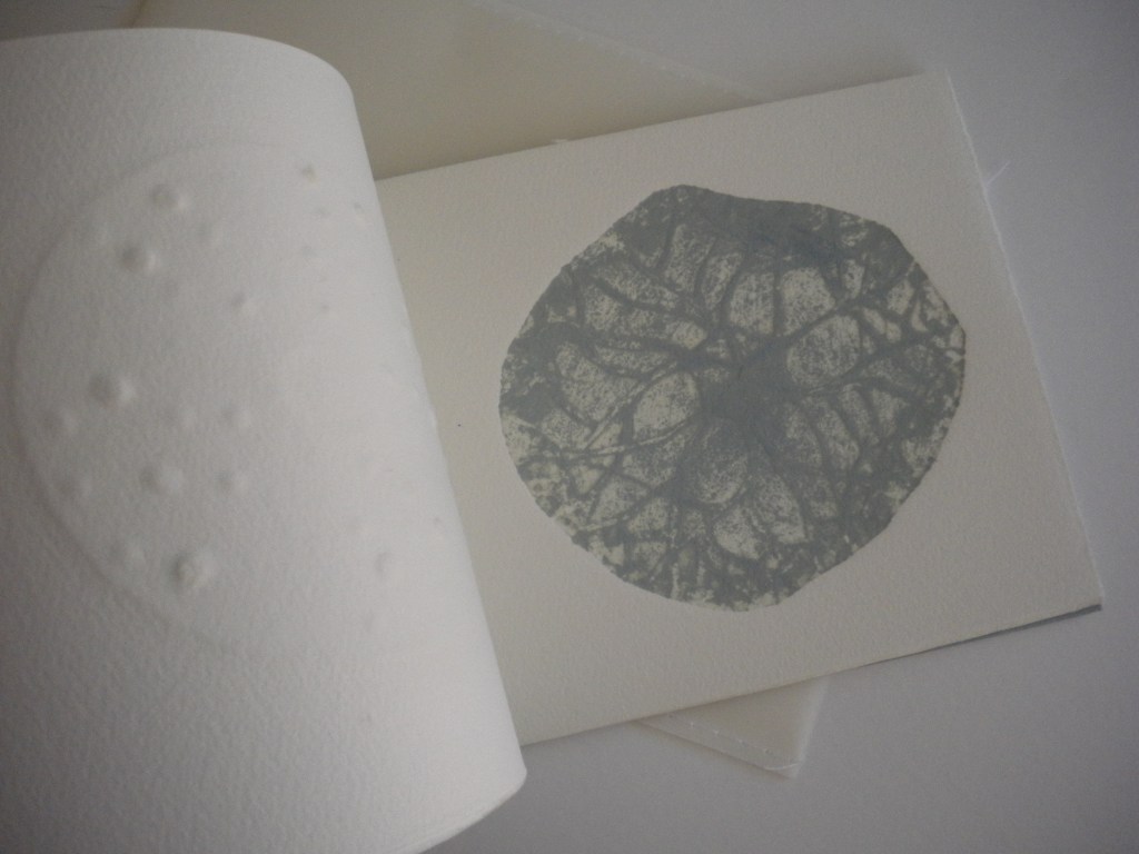 DES NIDS D’OURSINS AUX CORAUX D’ÉTOILES, comprend cinq gravures avec collages et gaufrages, 21x15cm, 8 exemplaires uniques, 2010