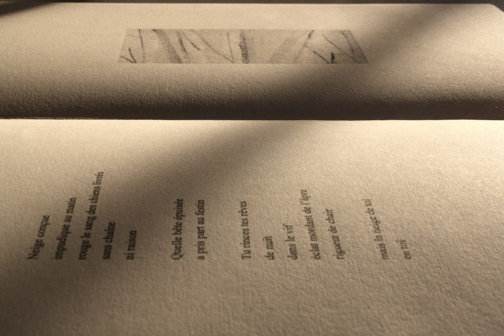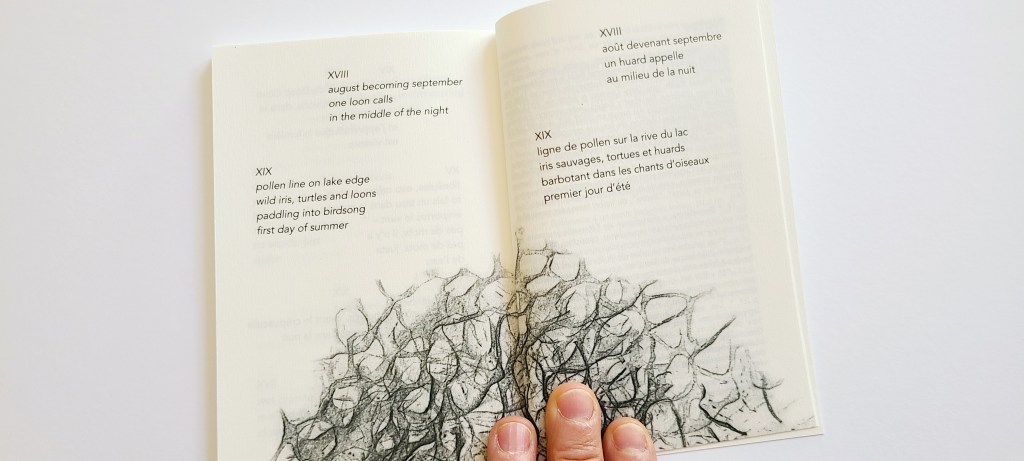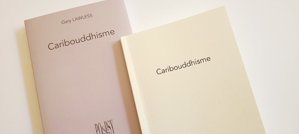 CARIBOUDDHISME, poèmes de Gary Lawless, traduction de l’anglais Danièle Faugeras, « lichens » estampage mine de plomb sur bois, éditions Po&psy, 10,5x15cm, 87 pages, 2025