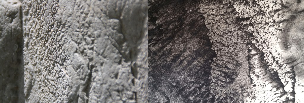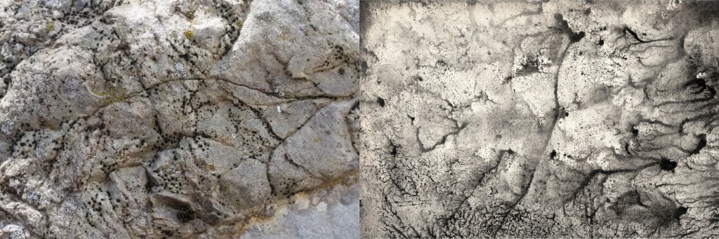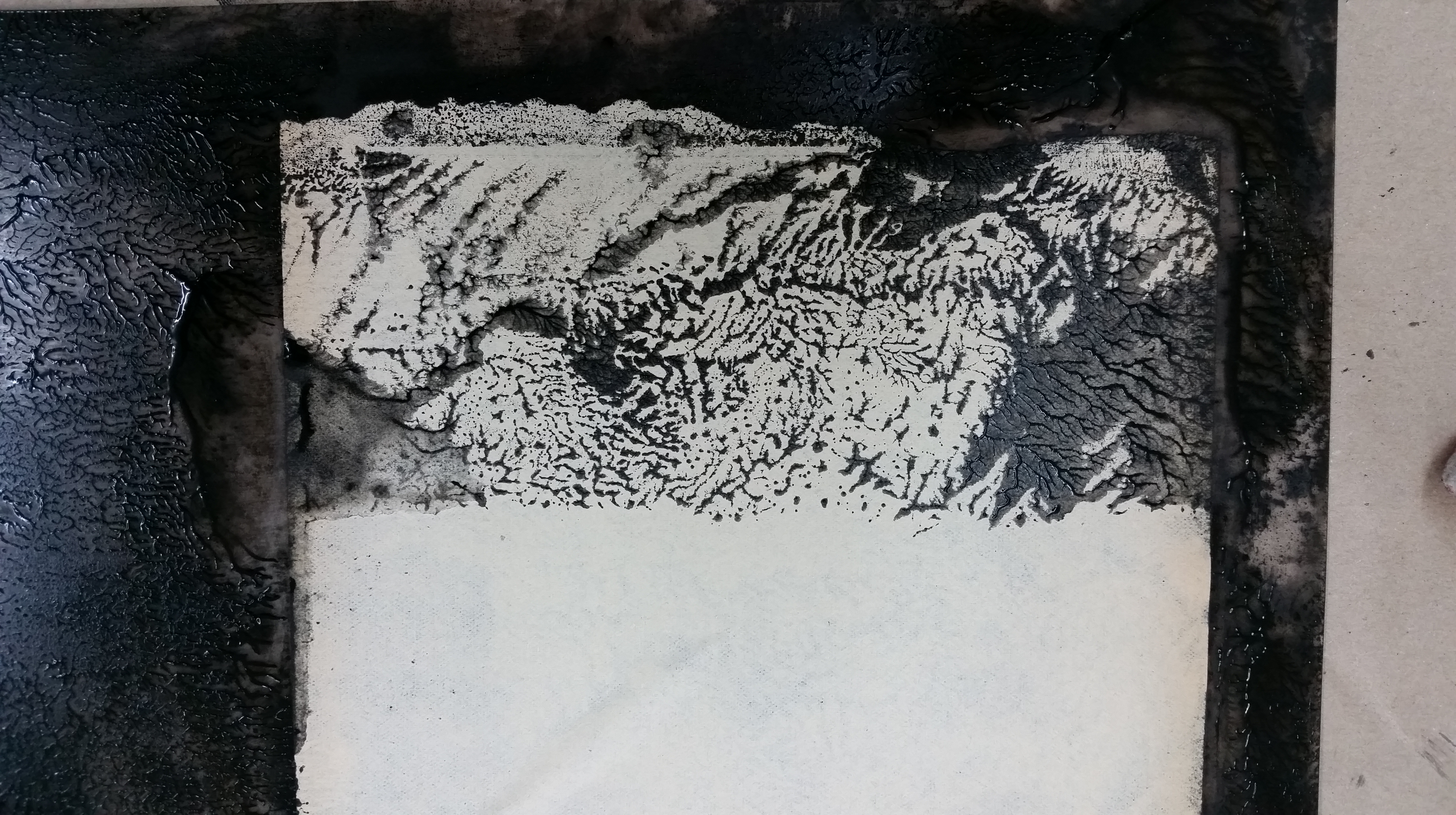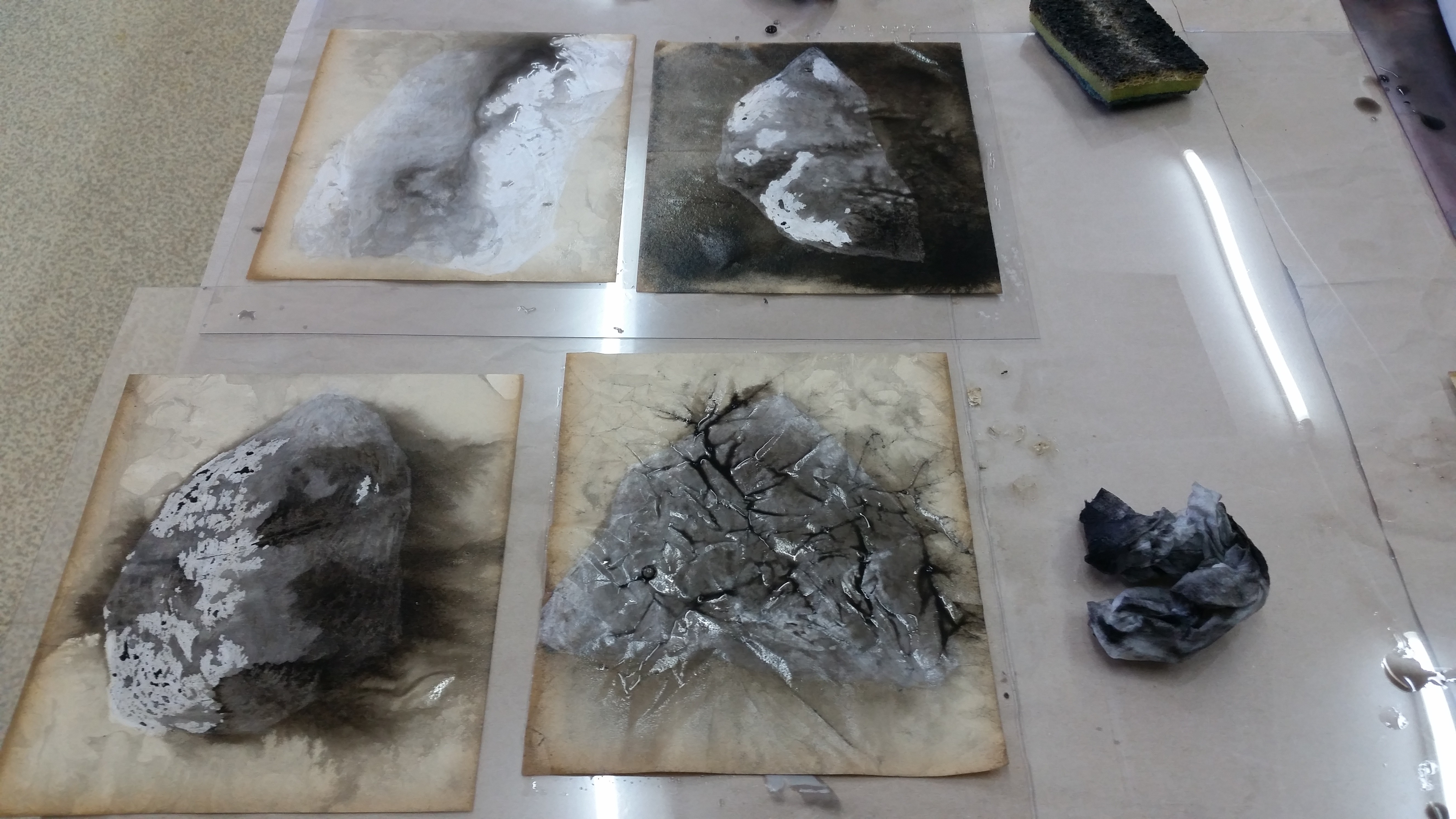 Les gouffres – monotypes sur blocs de bois, dimensions variables, de 10x12cm à 17x18cm